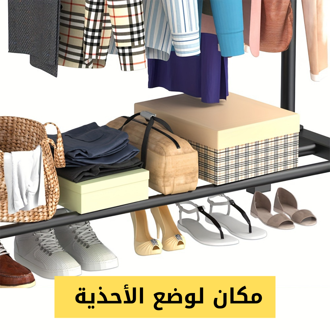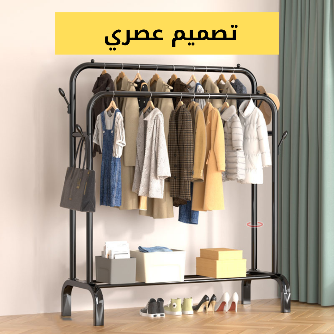 حامل الملابس العصري هو الحل العملي لتنظيم ملابسك بكل سهولة. سواء عندك مساحة صغيرة في البيت أو محل ملابس، هذا الحامل قوي ويتحمل كمية كبيرة من الملابس. كما فيه رف سفلي للأحذية، لكي تكون كل أغراضك مرتبة وفي متناول يدك بدون أي تعب
